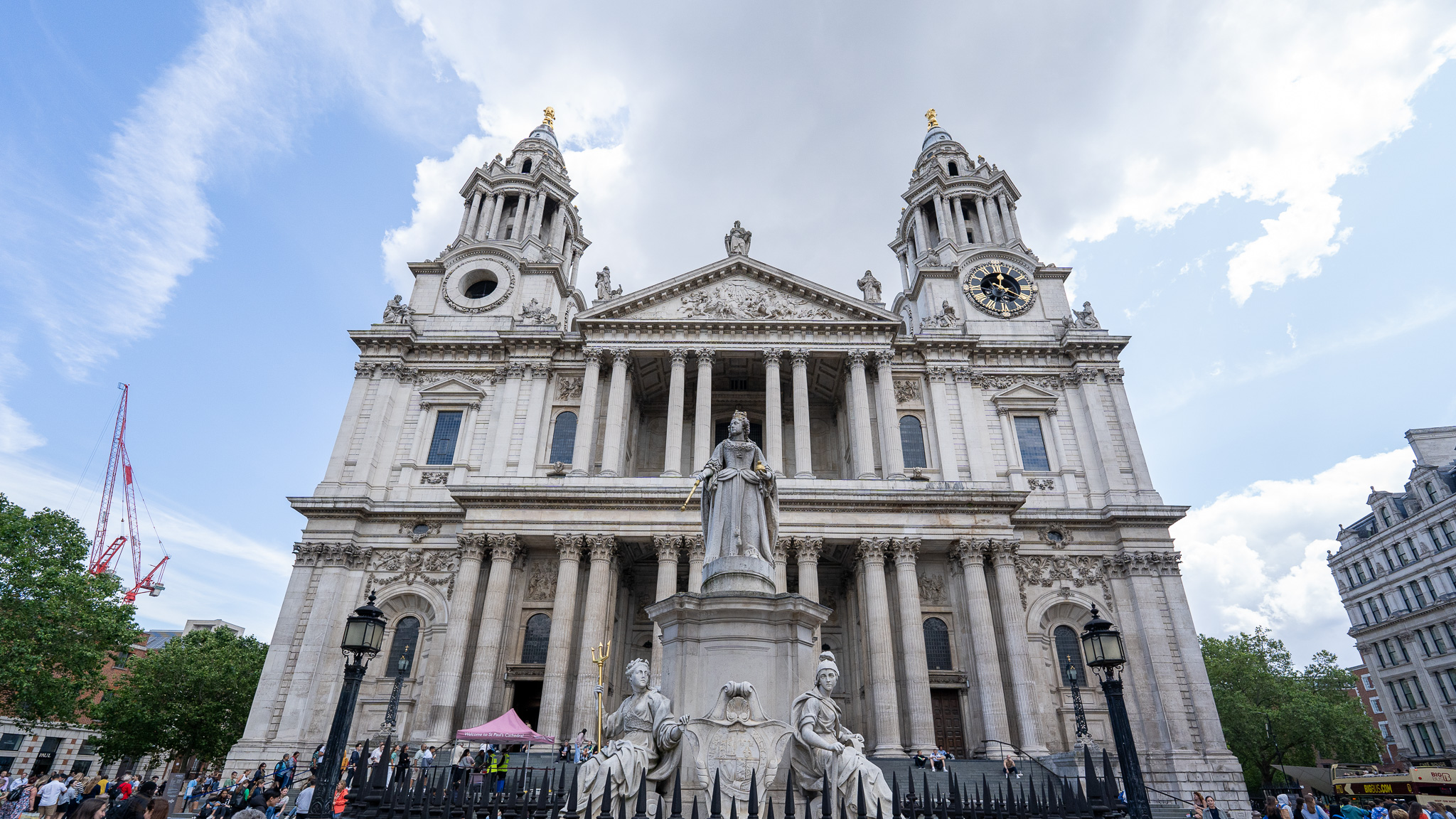 To locate it, visit St Paul’s Cathedral churchyard. Move to the West Front of the building; this is the forecourt (map). Here is the main entrance for visitors today. Locate the Baroque statue of Queen Anne (1665-1714). Most people identify this as a statue to Queen Victoria, but that’s wrong.