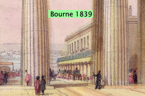 John Cooke Bourne’s lithograph of Euston Arch and the neo-classical screen in from of the Euston Grove terminus for the railway was published among his Drawings of the London and Birmingham Railway (1839) (British Library collection). This item also was sold as hand-coloured prints and much copied.