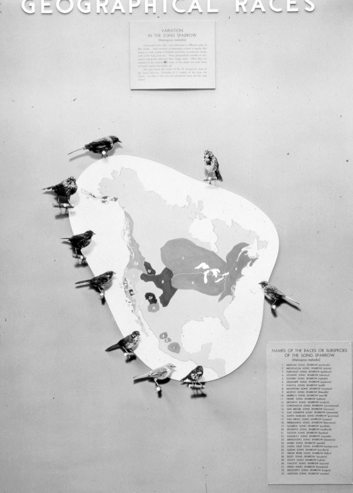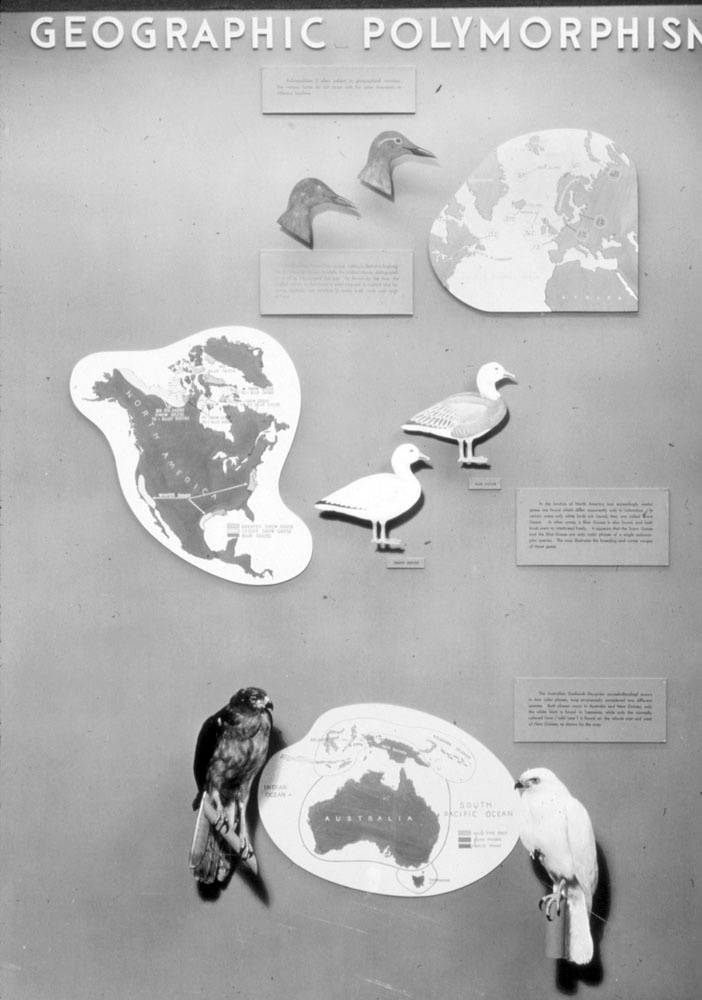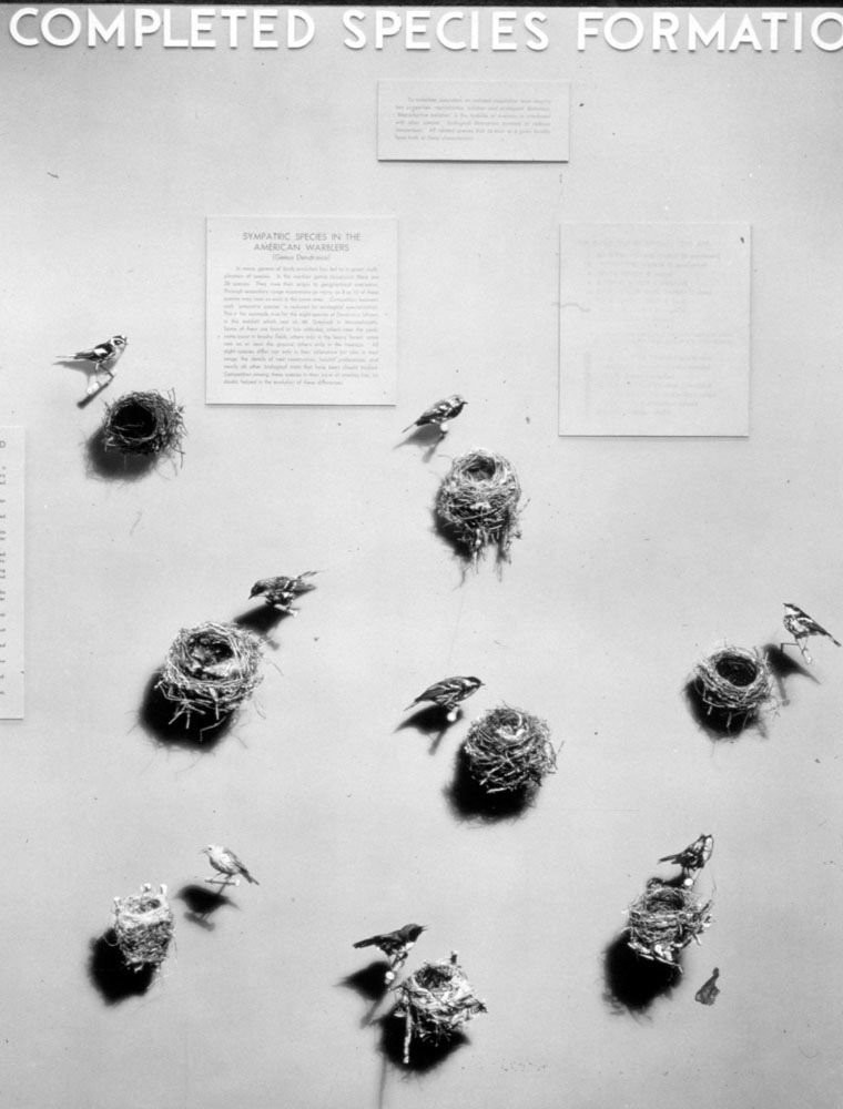 When Ernst Mayr arrived in New York in 1931, he carried considerable intellectual baggage. He was a disciple of Erwin Stresemann. He was an export, sent to America on short-term contract work. Mayr imported considerable factual knowledge about birds in the South Pacific, but he also arrived fully intending to transplant a research tradition derived from the Seebolm-Hartert and Stresemann “schools”. In his early correspondence, Mayr expressed great concern over the poor state of American ornithology. While he encountered many bird enthusiasts and nomenclature-based workers, he found only few “scientific” or biological workers. For a decade, he worked to improve this situation. Many activities show the imprint of his effort to convert American ornithology into a discipline focused on the biology of birds. The AMNH exhibition he worked on, the Sanford Hall’s “Biology of Birds,” offered a physical manifestation of this agenda (Cain 2009: 125).