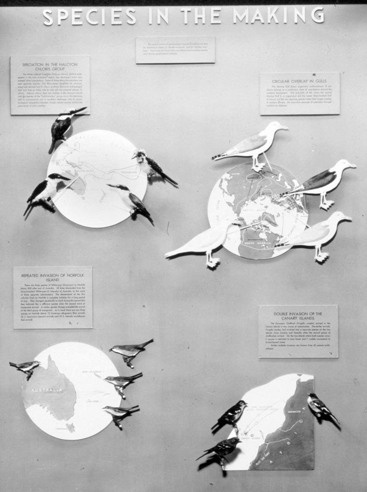 The synthesis period in evolutionary studies (most people call this the “evolutionary synthesis” or “Modern synthesis”) of the 1930s and 1940 has had a standard narrative for many years, but pressure has increased for revision. For example, there’s much more to Ernst Mayr than his authorship of the book, Systematics and the Origin of Species (1942). This paper reconstructs the exhibition Mayr helped designed at the American Museum of Natural History (AMNH). It also discusses the considerable range of activities Mayr had underway in the 1930s to support a programme he called, “bird biology”.