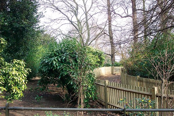 Path leading to 1985 Brown Dog Statue (by Nicola Hicks) in Battersea Park