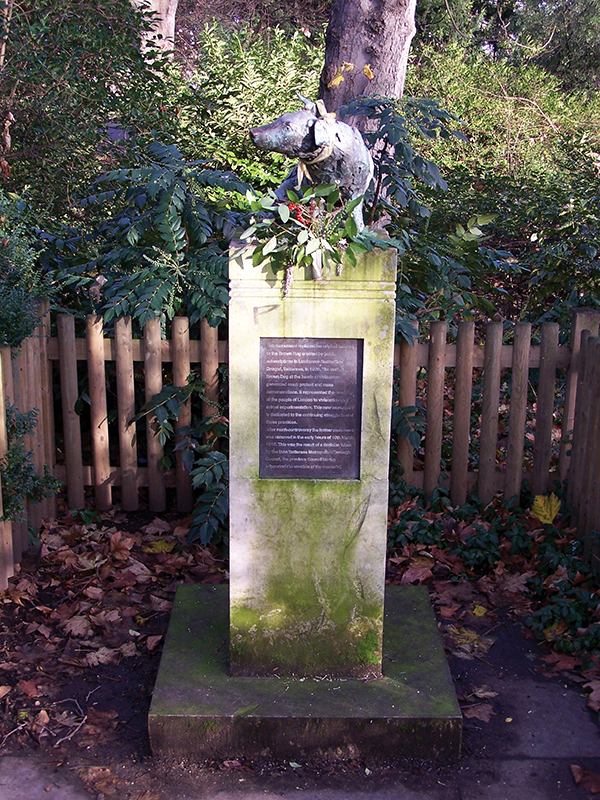 1985 Brown Dog Statue (by Nicola Hicks) in Battersea Park
