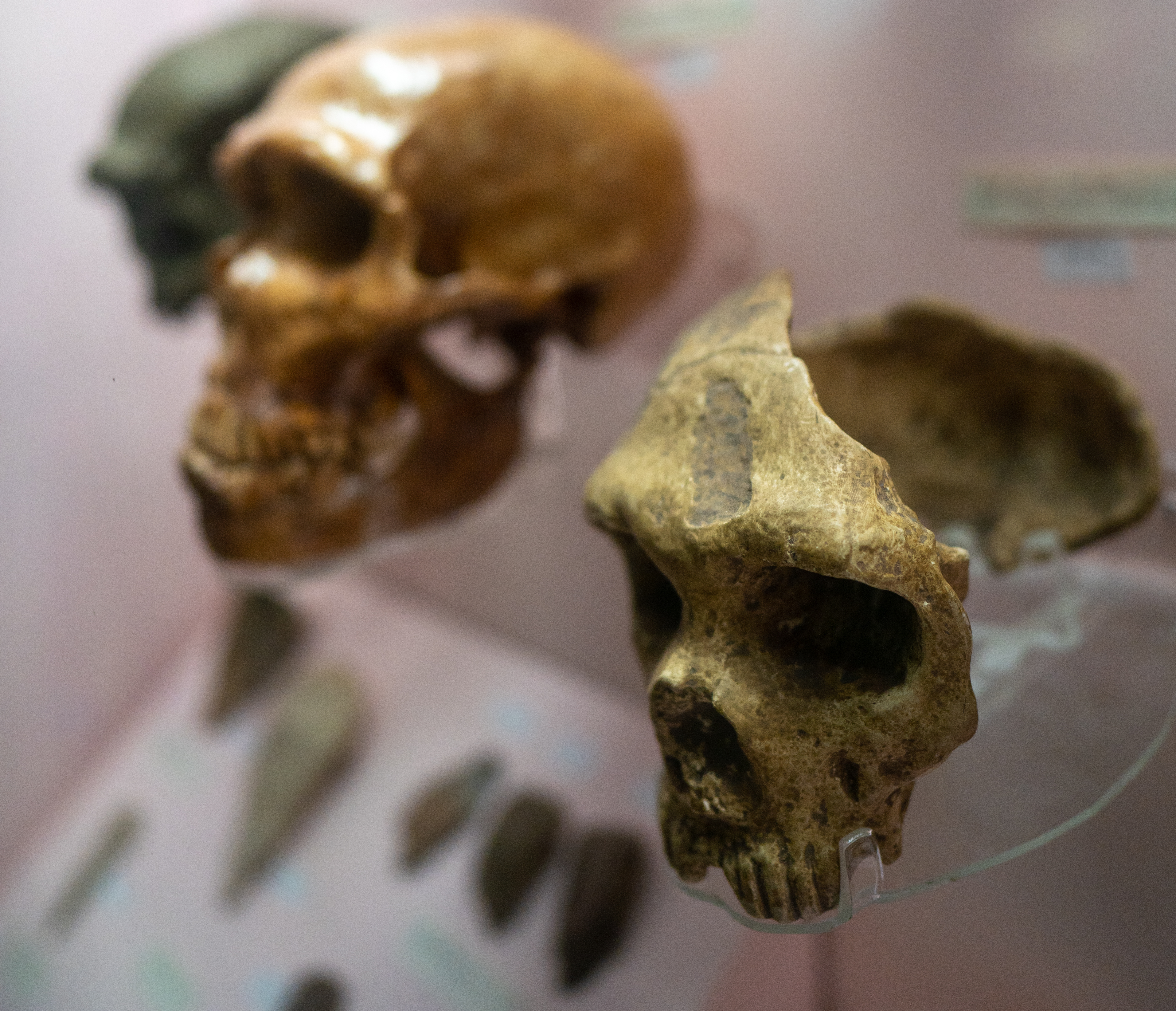 The Piltdown material was mentioned at the 1925 Scopes Monkey Trial, before the fraud was widely recognised. At the time it was described as the most ancient English human relic. The physical remains consisted of a crushed woman’s skull and a jaw that scarcely could be distinguished from that of a chimpanzee. Scientists noted that the skull was exceedingly thick and its capacity was much less than that of modern man, although it was distinctly human; conversely, the jaw approached that of an anthropoid. The discovery showed a curious admixture of simian and human characteristics. The remains are considered an approach toward man in very ancient strata, with an estimated age of about 200,000 to 300,000 years. There was significant controversy surrounding the significance of the fragments, partly because they were badly damaged and scattered before reaching scientific hands.